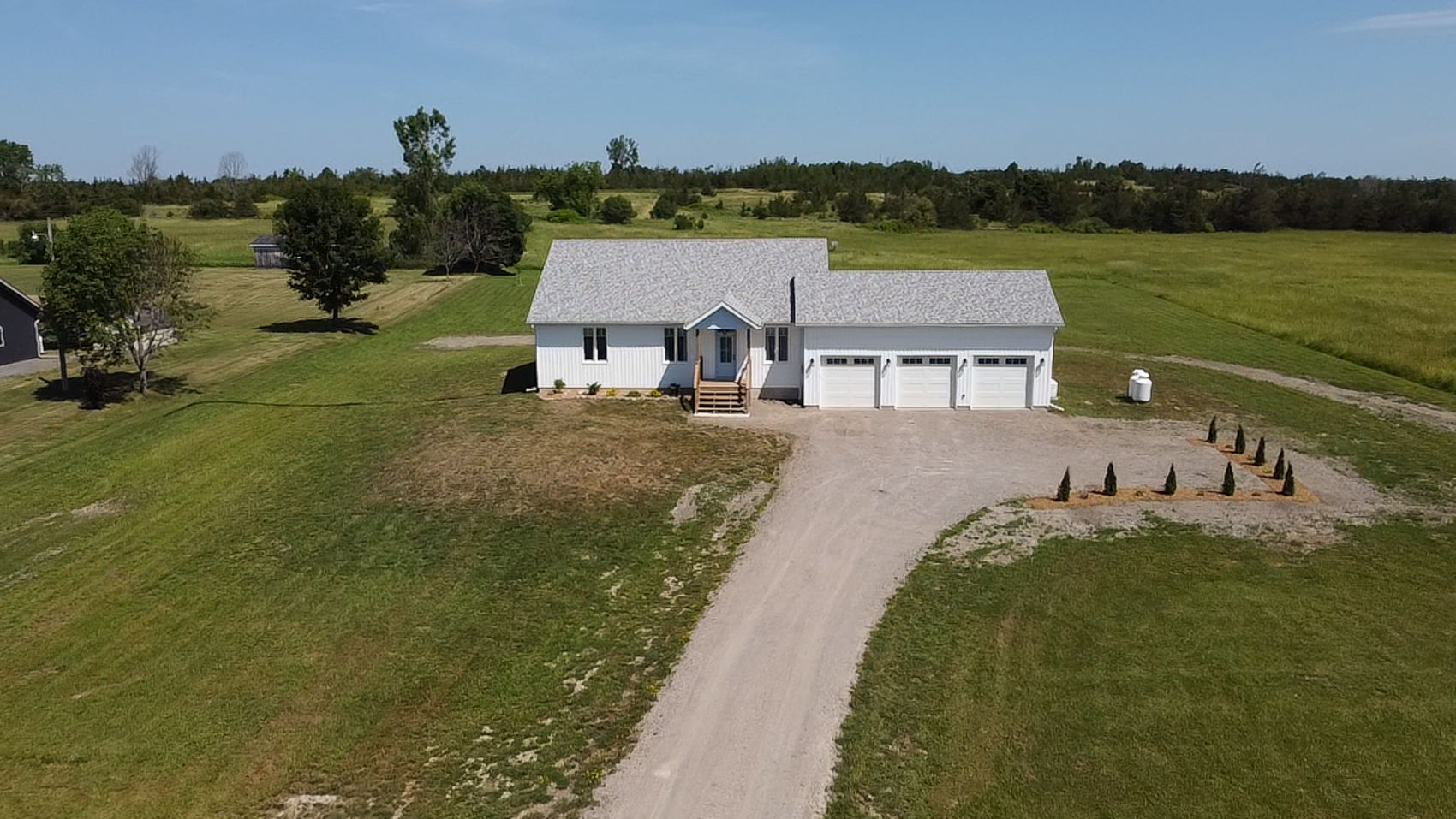 Step into this meticulously crafted, newly built home that seamlessly blends thoughtful design with luxurious comfort. The main level boasts three spacious bedrooms and two elegant full bathrooms, including a serene primary suite with a spa-inspired en-suite. At the heart of the home lies a gourmet kitchen, featuring top-of-the-line appliances and a generous island, all flowing effortlessly into open-concept living and dining areas bathed in natural light. Expansive glass doors create a harmonious indoor-outdoor connection, perfect for entertaining or relaxing in style. The finished basement offers two additional bedrooms, a half bathroom, and a well-appointed laundry room. A spacious recreational room provides versatile space for a home theatre, or play area, complemented by ample storage to keep everything organized. The three car garage has plenty of space for vehicles, toys, a workshop and even a home gym. 14kw standby Generac Generator added for peace of mind and backup energy. Every detail of this home has been thoughtfully considered, resulting in an estate that is both functional and exquisitely designed. Experience the pinnacle of modern living in this exceptional two acre property. Close proximity to Belleville, Napanee and Kingston.